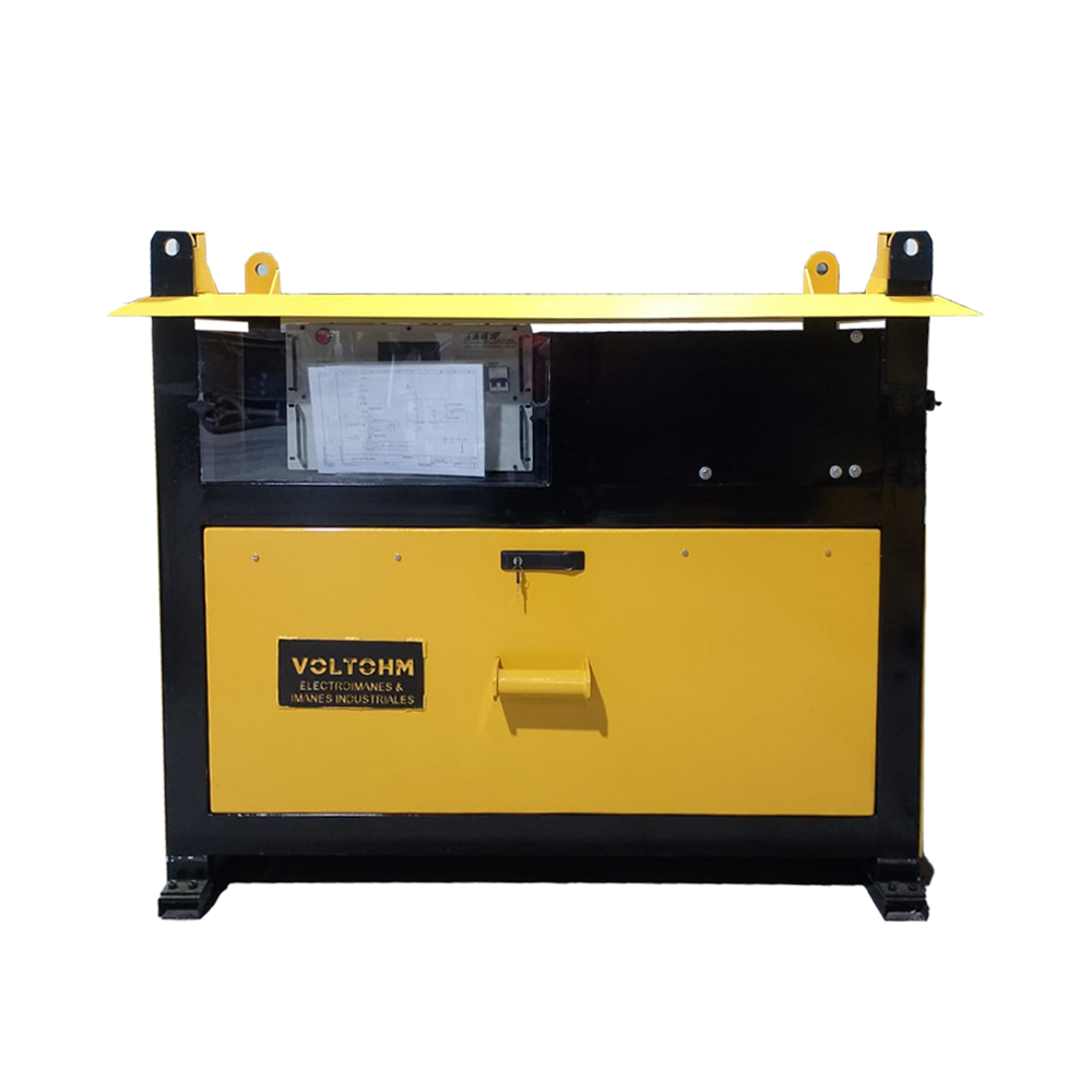 Si se interrumpe la alimentación principal, el sistema auxiliar mantiene activado el electroimán o, más importante aún, garantiza una desactivación controlada para soltar la carga en una zona segura.